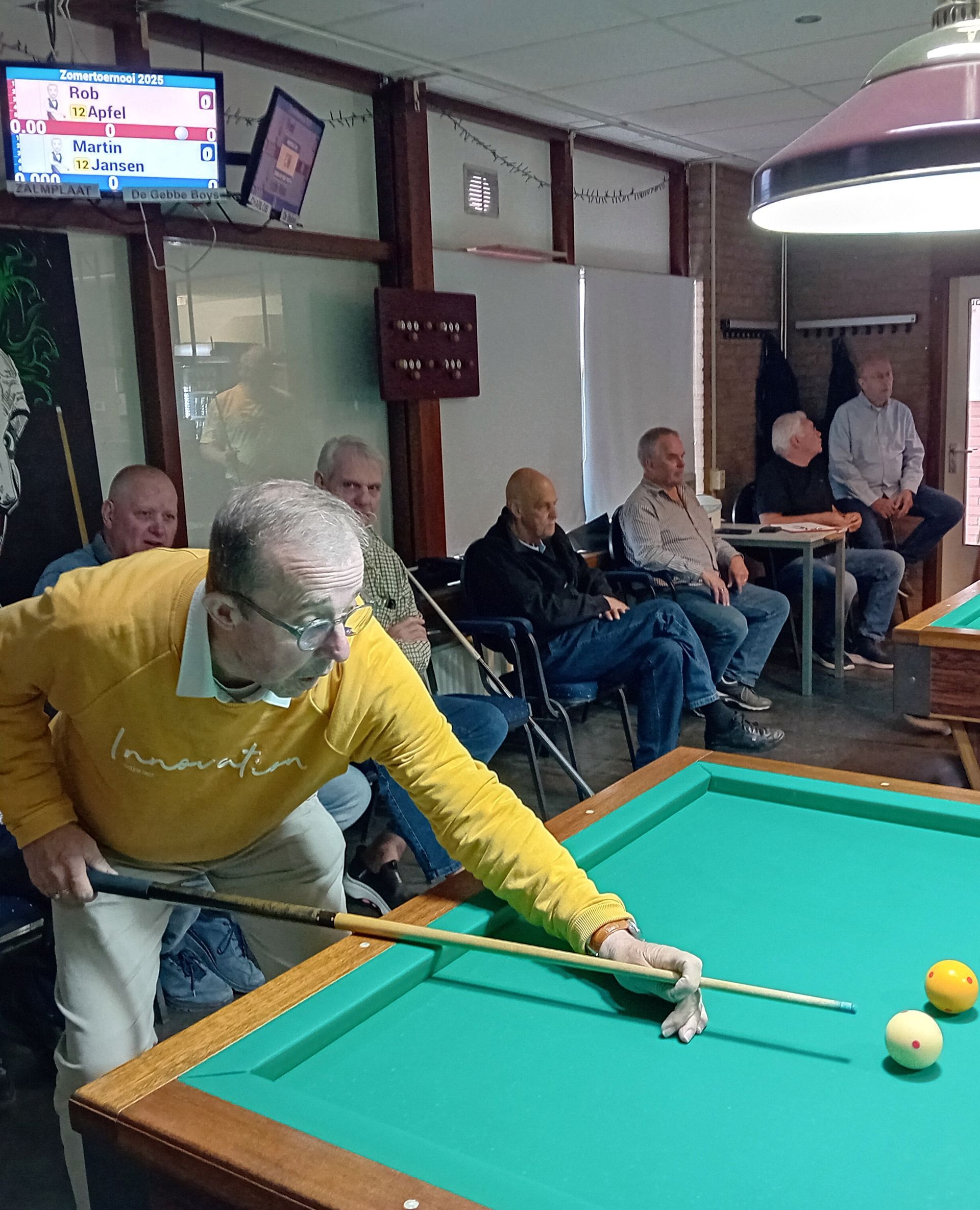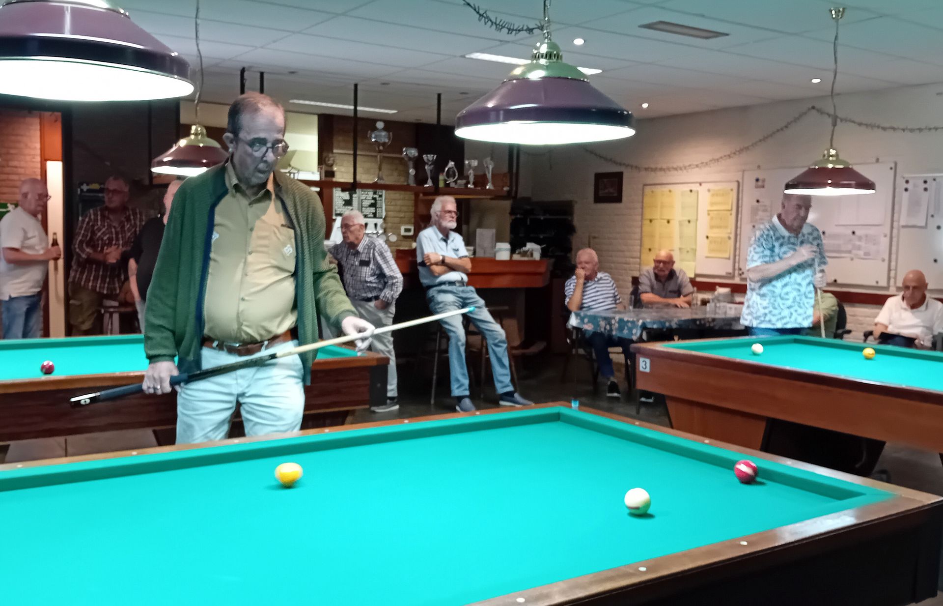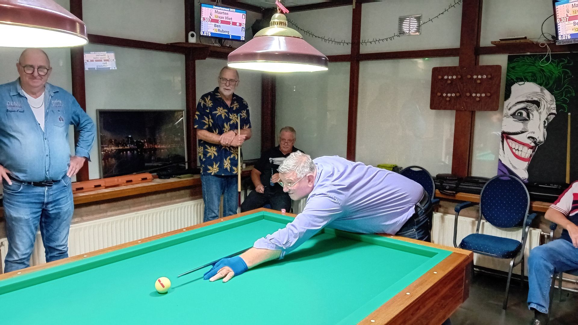 Henk gaat beginnen en staat al snel boven de 1 moyenne te spelen.