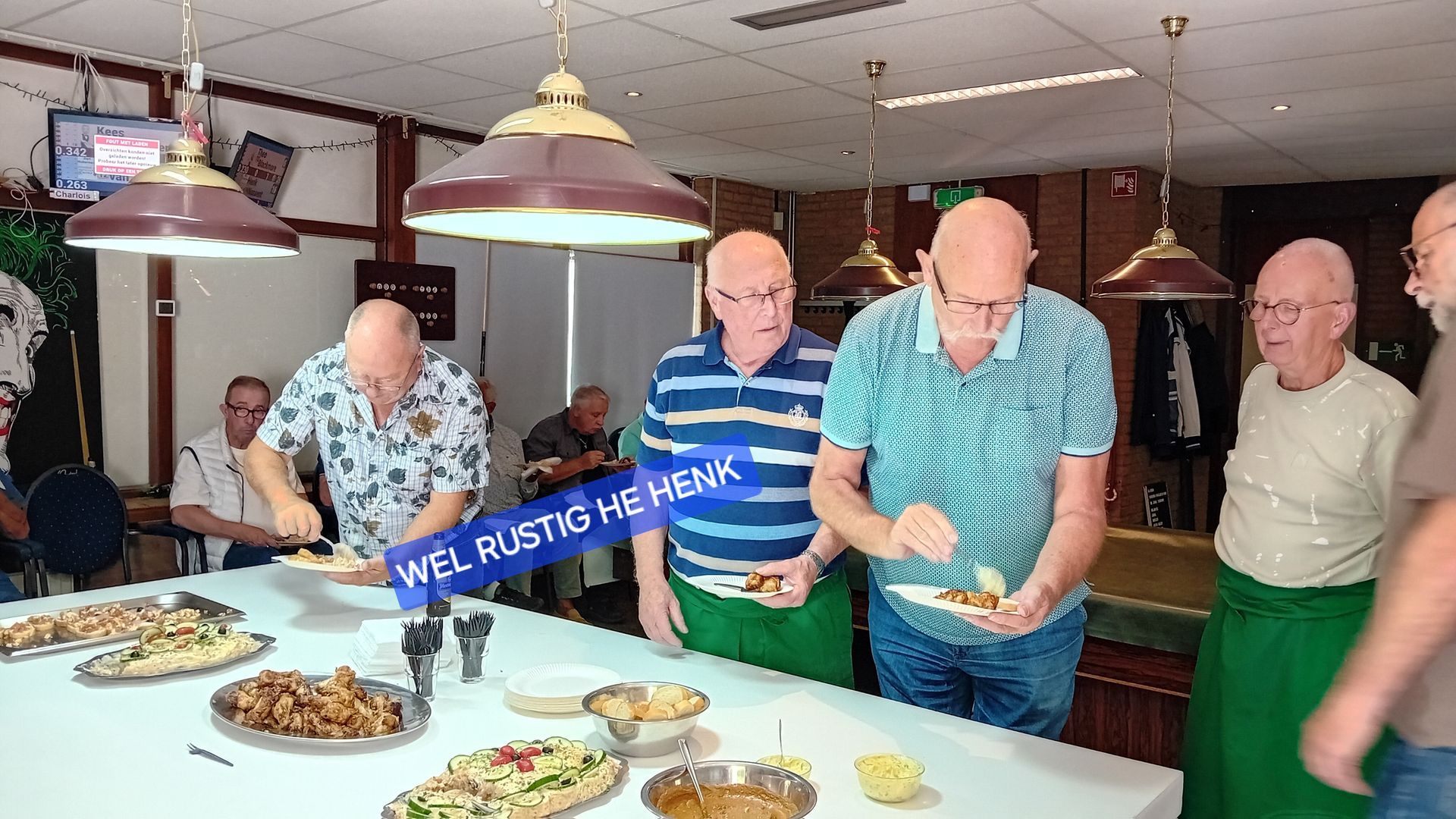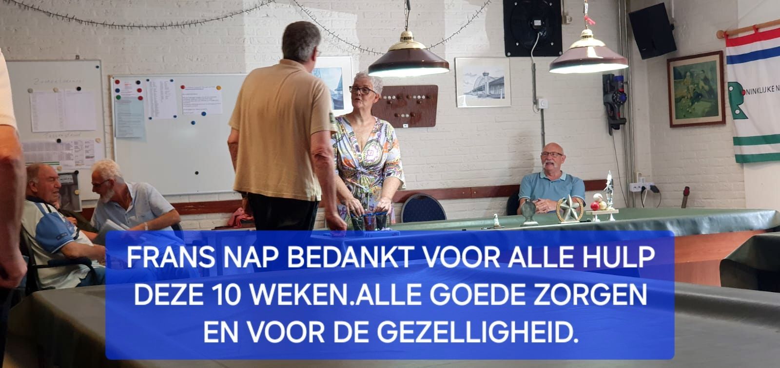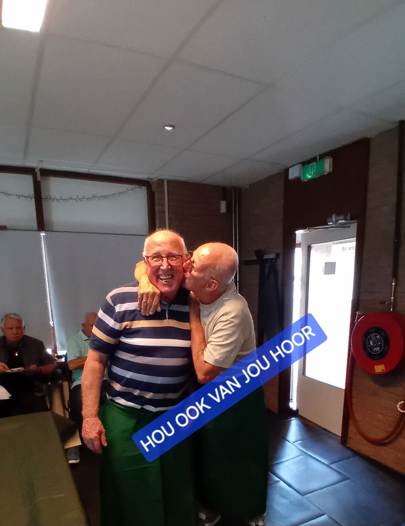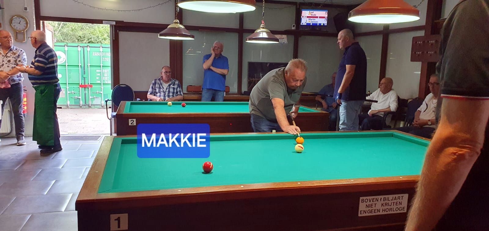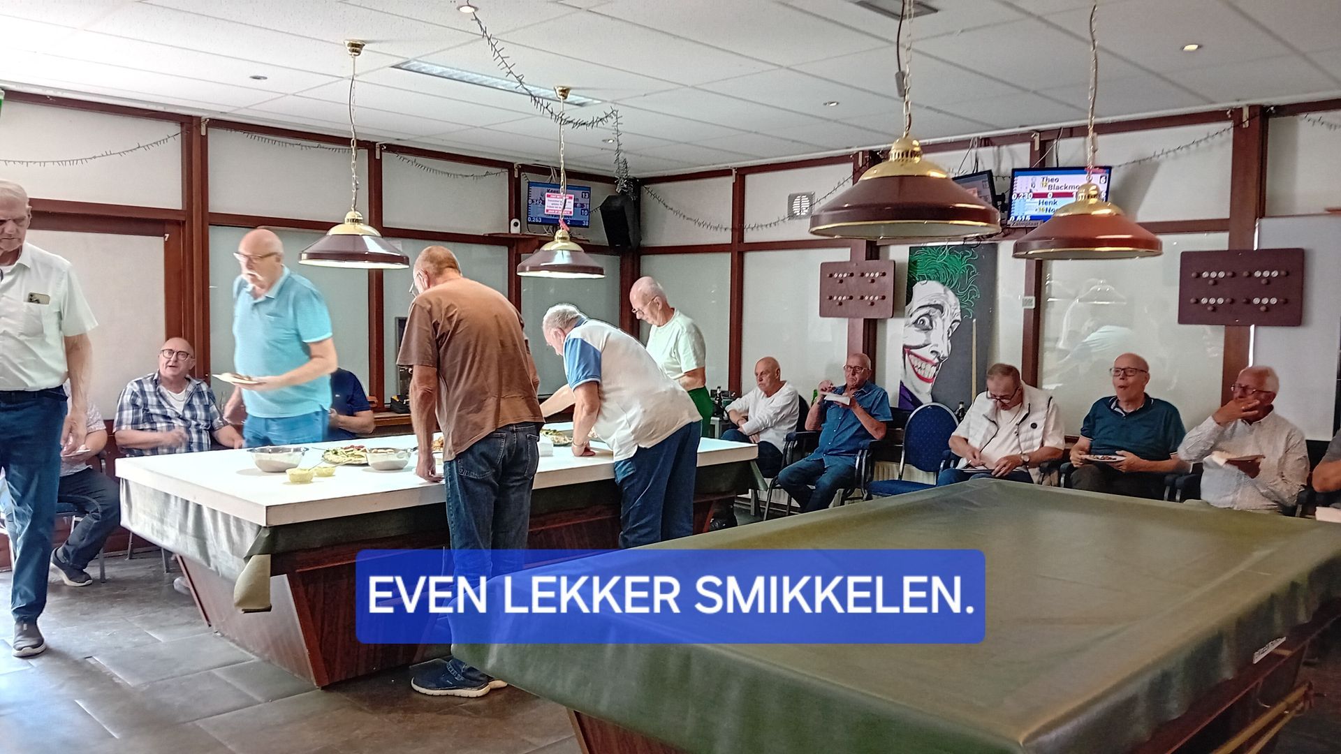 Maar wat wordt er gezegd ....gezelligheid kent geen tijd.πΊπΊ Hoop dat een ieder het naar zijn zin heeft, nou wij wel. Hoor wel zo nu en dan in mijn oor....lang zitten heb de laatste partij. Daar hebben wij alle begrip voor en er is maar 1 oplossing, gewoon ff gezellig komen beppen bij de bar.π En wat is er gebeurd, de hoogste serie is verbeterd door Leo Steer met een serie van 5. Zien we woensdag a.s. een serie van 6? De kortste partij is ook verbeterd door Henk Nossent in 21 beurten. Roy Toonen ging s' middags ook goed maar het lukte net niet om Henk te verslaan. Roy was in 22 beurten uit. Gefeliciteerd heren, er werd goed gespeeld. De moyennes worden steeds beter. Toppers.ππ Tot woensdag 2 juli.