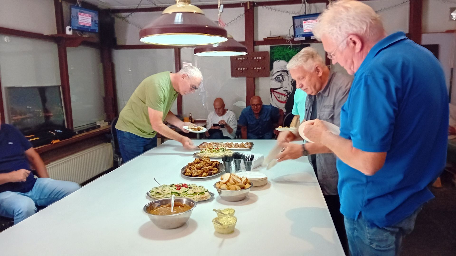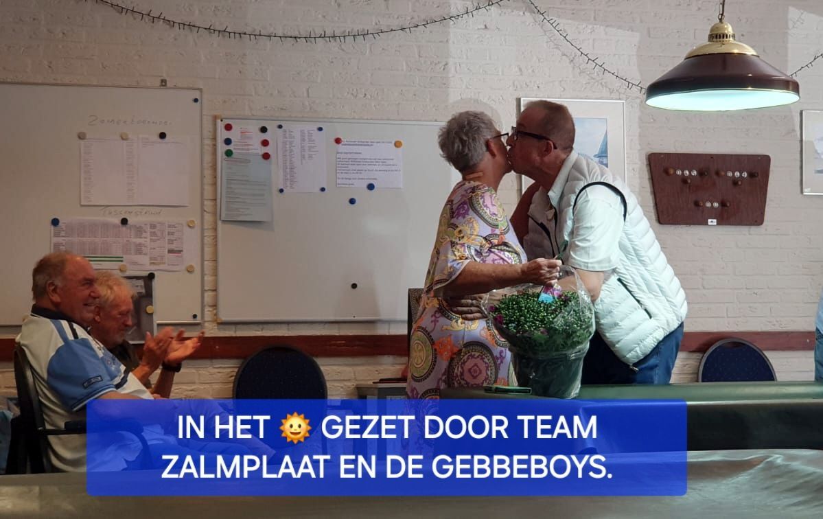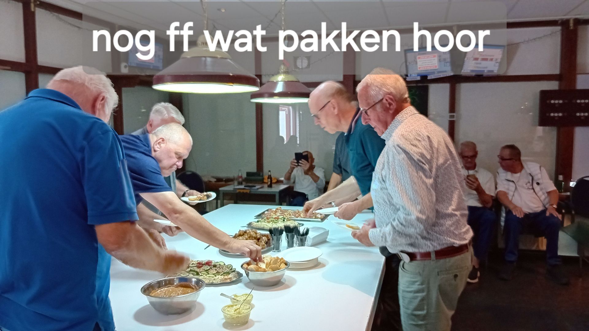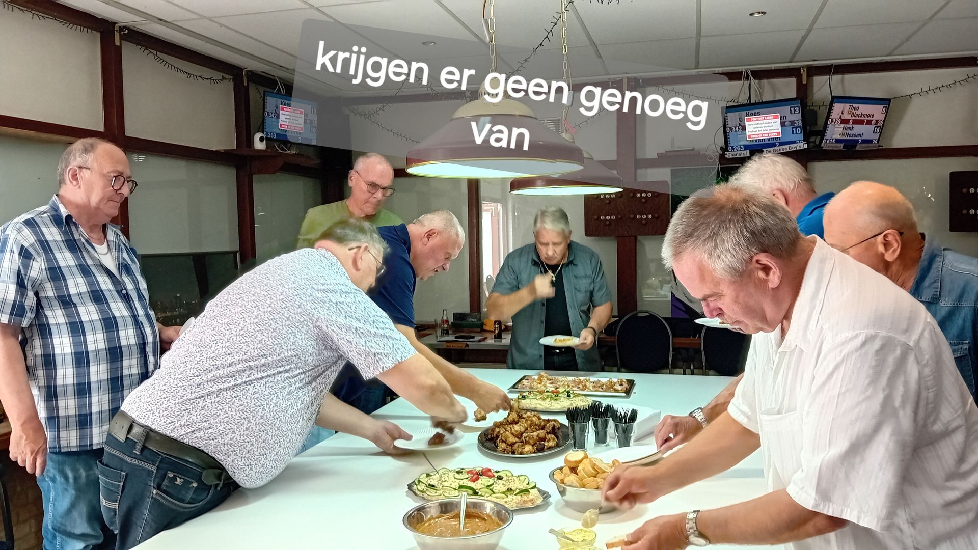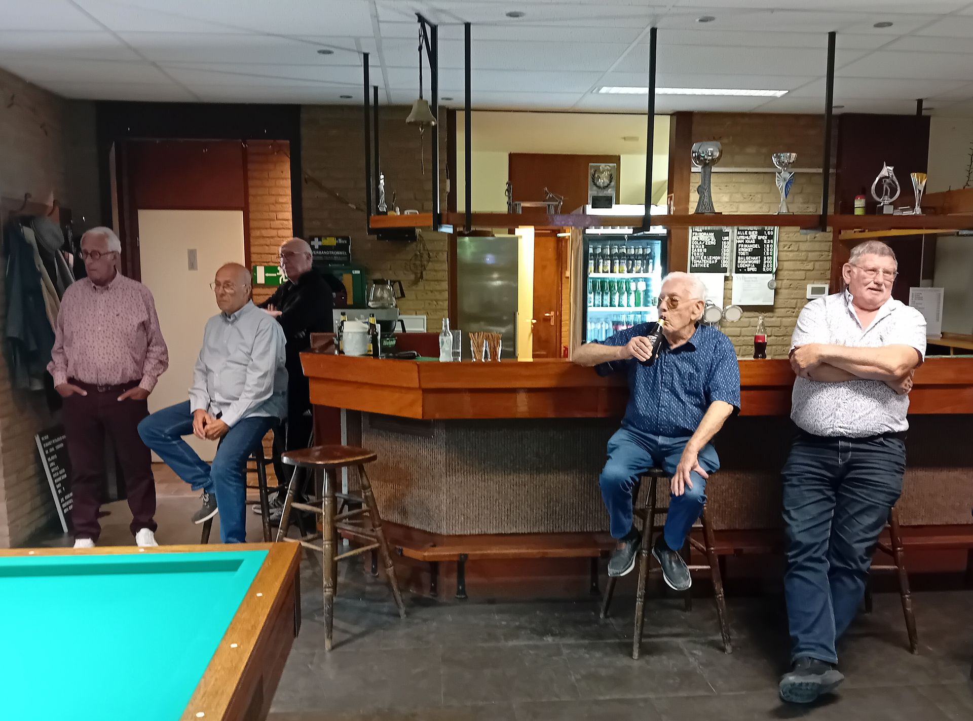 Maar wat wordt er gezegd ....gezelligheid kent geen tijd.πΊπΊ Hoop dat een ieder het naar zijn zin heeft, nou wij wel. Hoor wel zo nu en dan in mijn oor....lang zitten heb de laatste partij. Daar hebben wij alle begrip voor en er is maar 1 oplossing, gewoon ff gezellig komen beppen bij de bar.π En wat is er gebeurd, de hoogste serie is verbeterd door Leo Steer met een serie van 5. Zien we woensdag a.s. een serie van 6? De kortste partij is ook verbeterd door Henk Nossent in 21 beurten. Roy Toonen ging s' middags ook goed maar het lukte net niet om Henk te verslaan. Roy was in 22 beurten uit. Gefeliciteerd heren, er werd goed gespeeld. De moyennes worden steeds beter. Toppers.ππ Tot woensdag 2 juli.