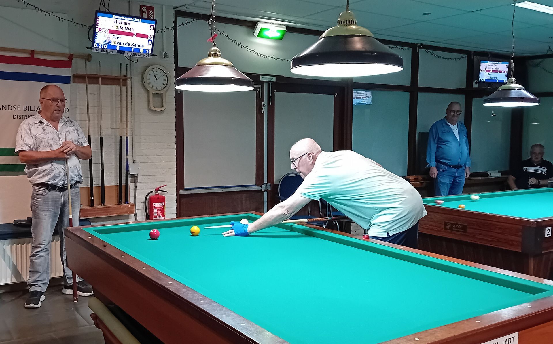 De Bielzen moesten tegen IJsselmonde. Richard de Nies moest tegen Piet van de Sande. Richard onze benjamin onder de driebanders ging als een jonge god. Hij zag de lijnen steeds beter en maakte een serie van 4, de vijfde ging net mis.