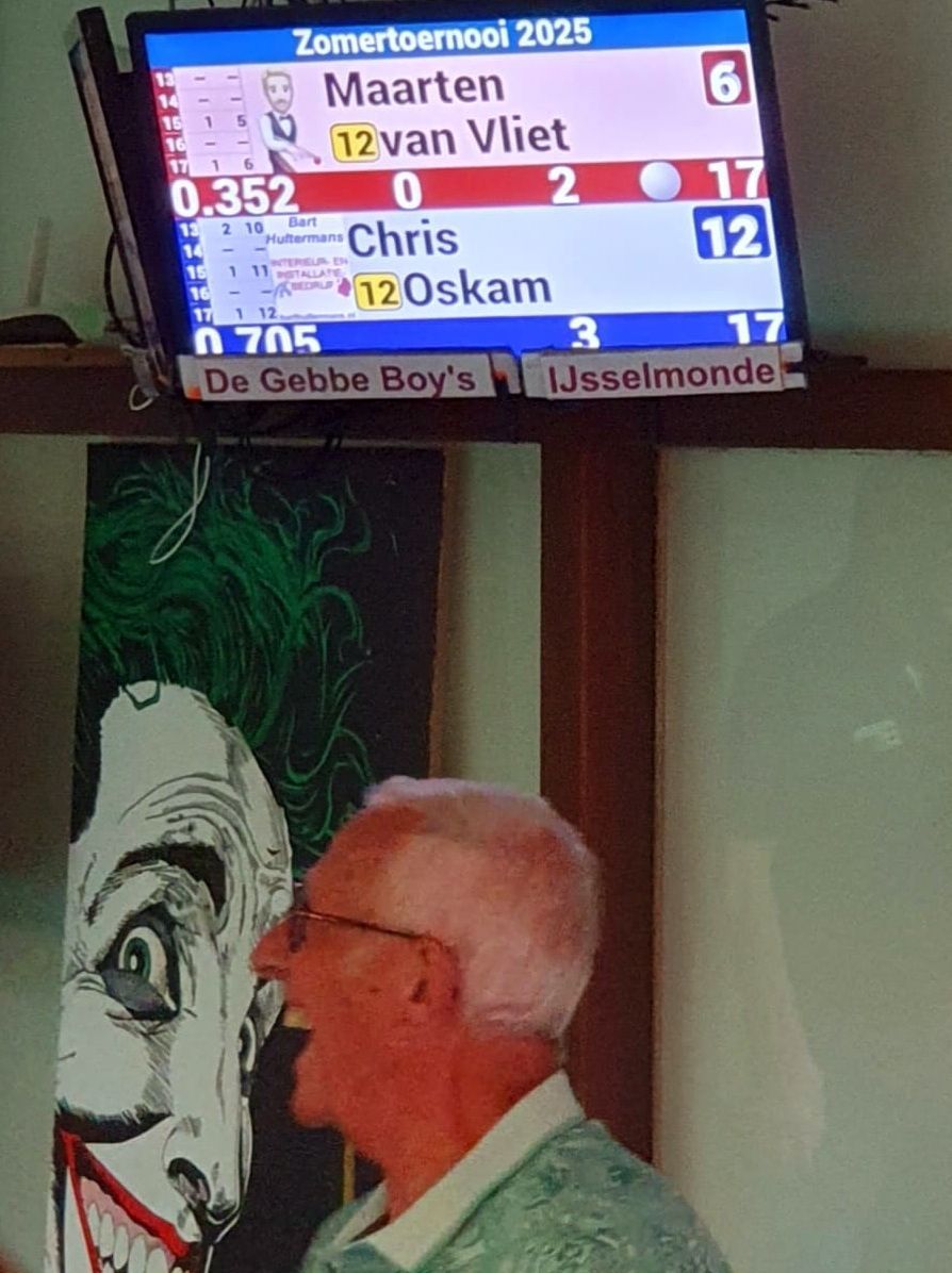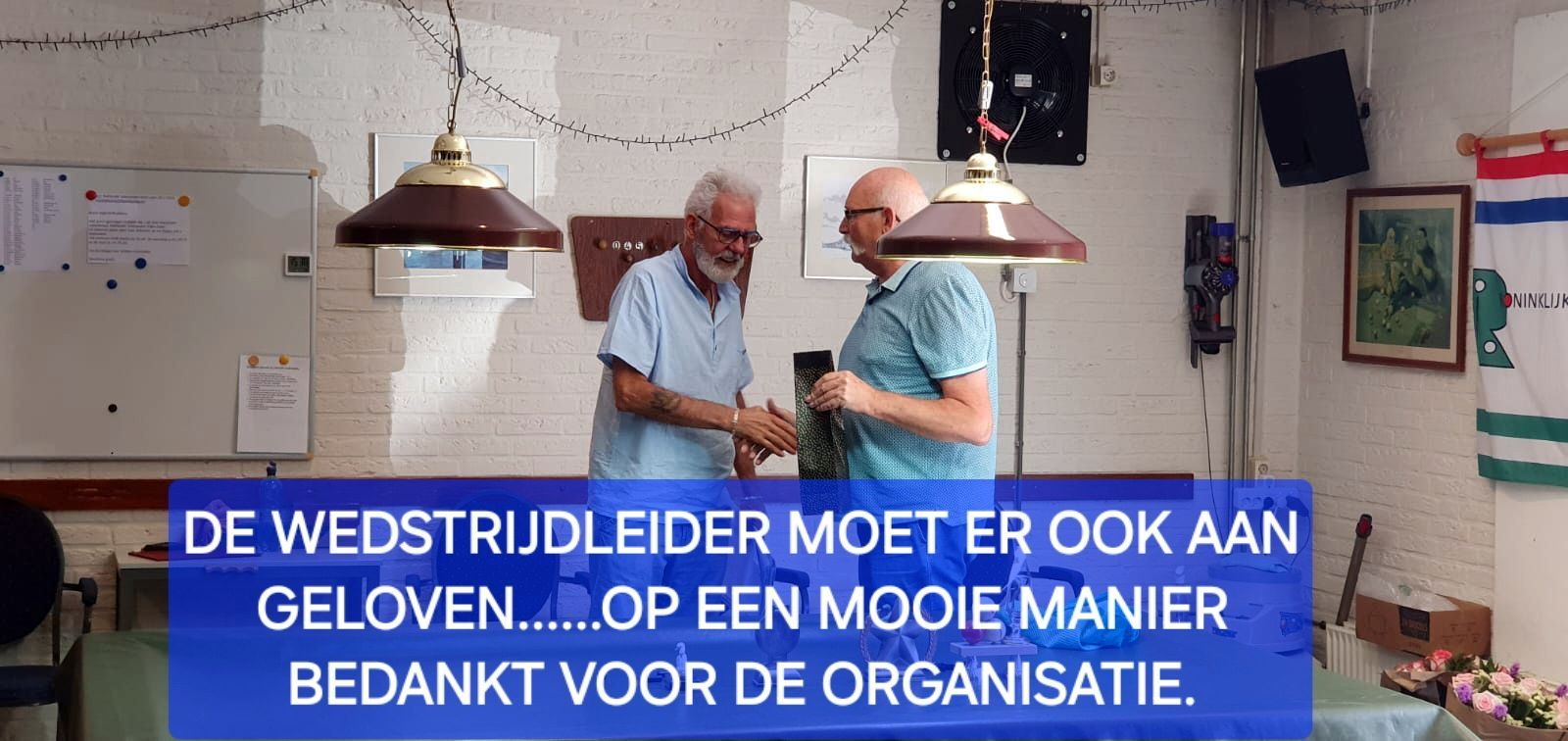 Jan .... Het bestuur van IJsselmonde heeft besloten voor waardering naar jou toe om het toernooi een andere naam te geven, die jij niet mag en kan veranderen. Zomertoernooi driebanden gaat het vanaf nu heten .......