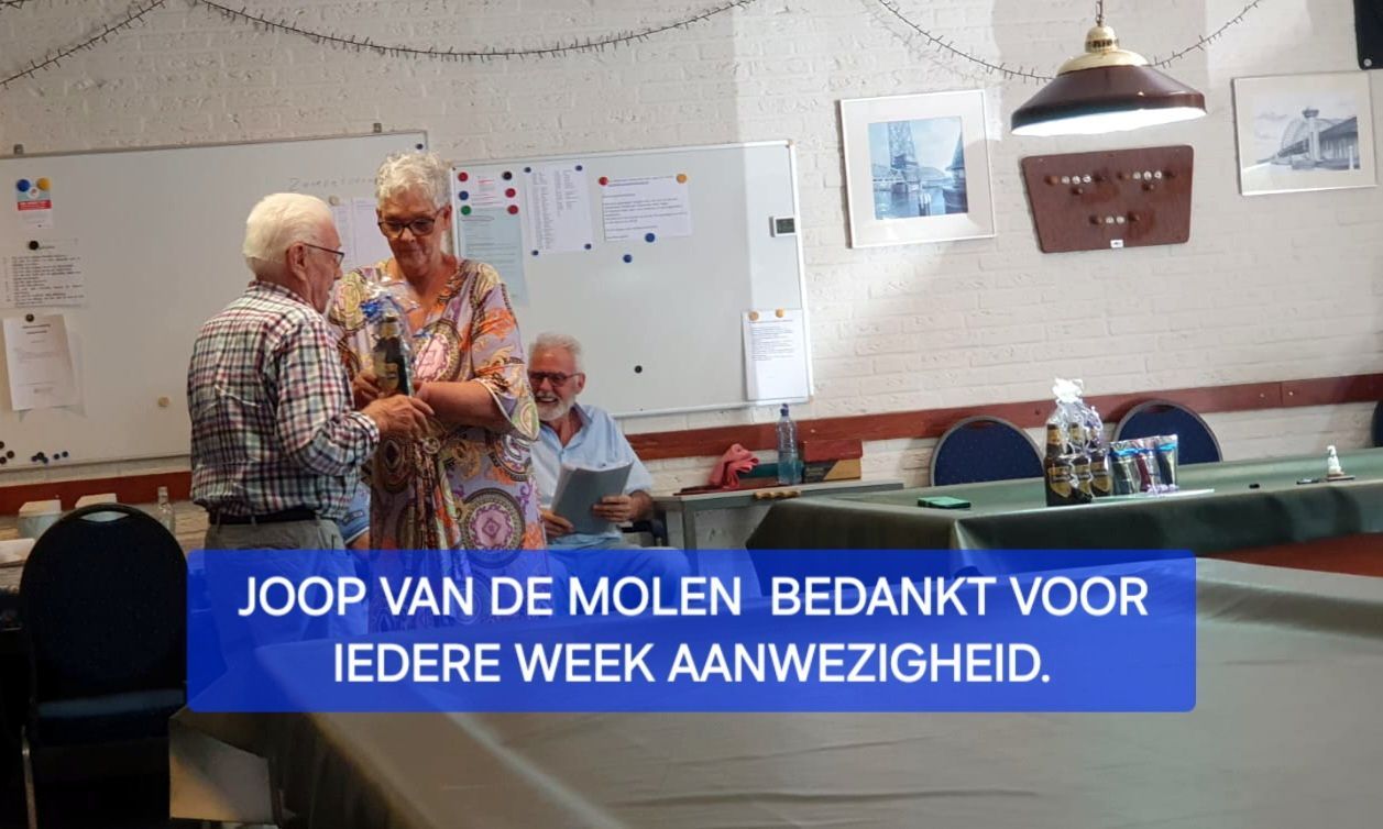 Joop van de Molen wordt ook naar voren geroepen, want Joop was er ook alle 10 de weken bij. Door weer en wind op zijn scootmobiel.